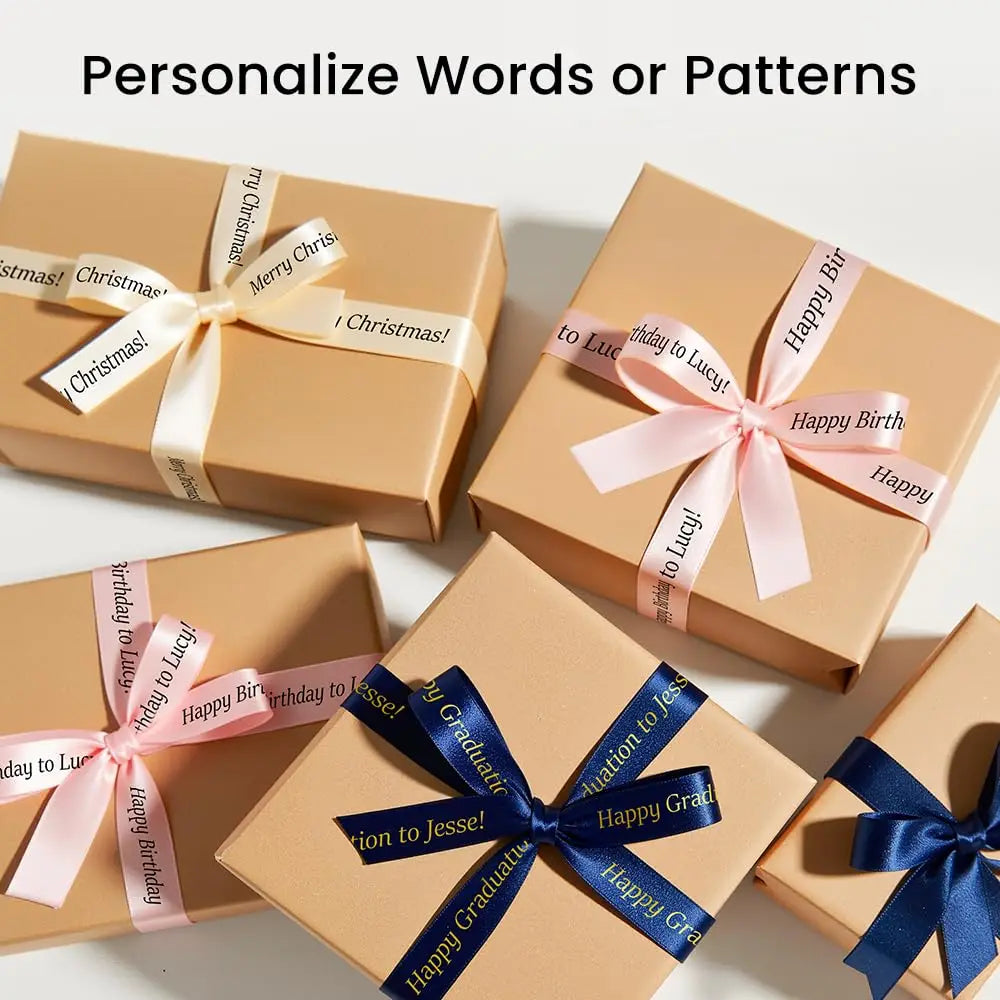 Print names 💌, thank-you messages 💕, dates 📅, logos 🏷️, and personalized notes directly onto the ribbon for a professional luxury finish.